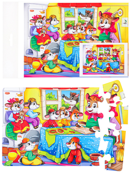 —Пазл-рамка Рыжий кот 'Волк и семеро козлят' 24 эл., полиэтилен. уп., европодвес, П24-5760