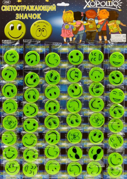 —Значки светоотражающие улыбка, d-3 см, на блистере, 1969