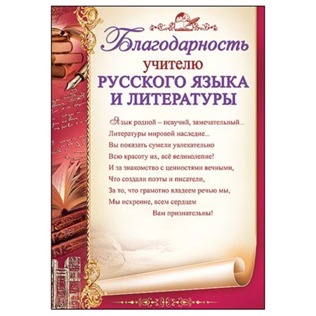 Благодарность 'Учителю русского языка и литературы', 3200246