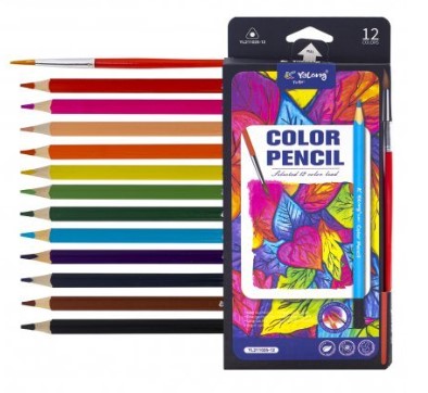 —Карандаши акварельные 12 цв Yalong трехгран, заточ, кисть, грифель 3.0 мм, YL211025-12