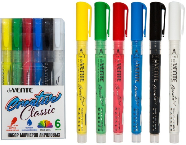 —Набор маркеров акриловых deVENTE 6 цв, ширина линии 1,5 мм, 5044302