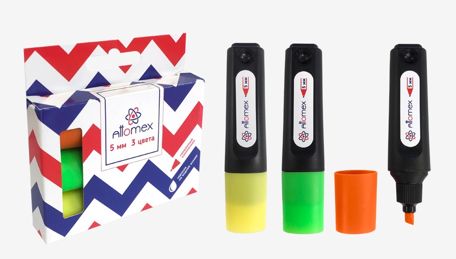 Набор маркеров-выделителей, Attomex, (03 цвета), желт, зел, оранж, 1-5 мм, 5045358