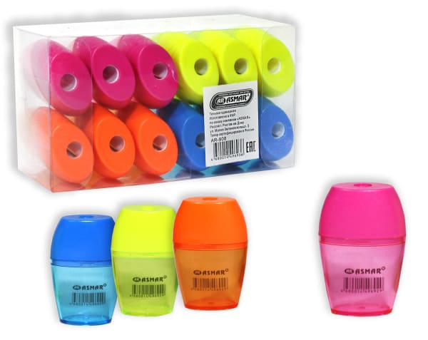 —Точилка одинарная с контейнером цветная, AR-908