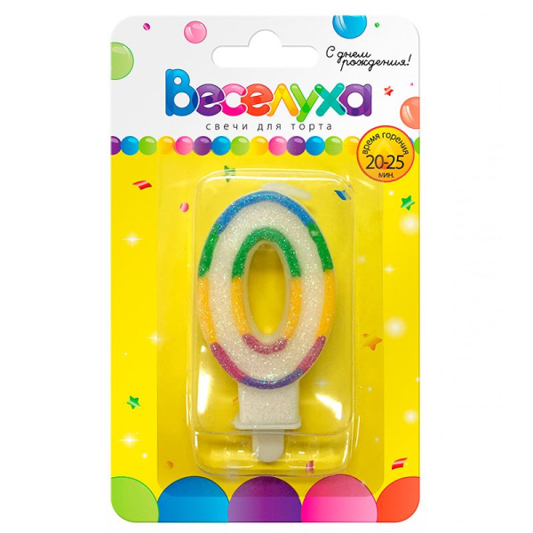 —Свеча тортовая цифра 0, Разноцветный градиент, с глиттером , 620086-0