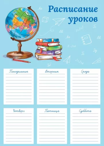 Расписание уроков, А4, 'Глобус', 210х297 мм, 67652