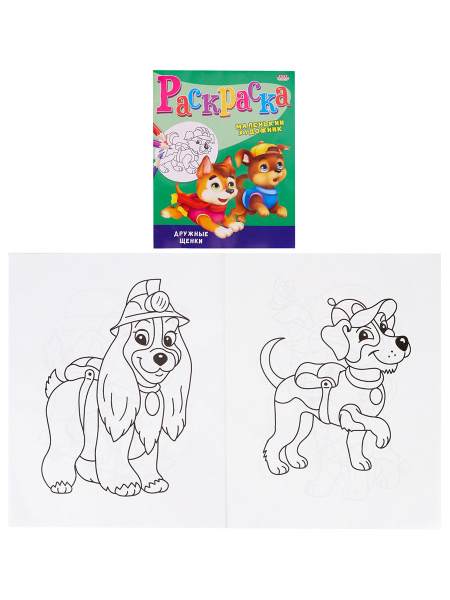 Раскраска А4 ДРУЖНЫЕ ЩЕНКИ (Р-3493) 8л,на скреп,обл.-мелов.бумага,блок - офсет